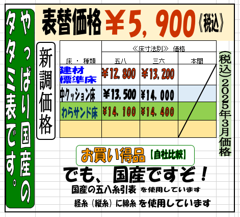 ☆ 畳縁を特殊な物にしない限り、殆ど同じ値段です。